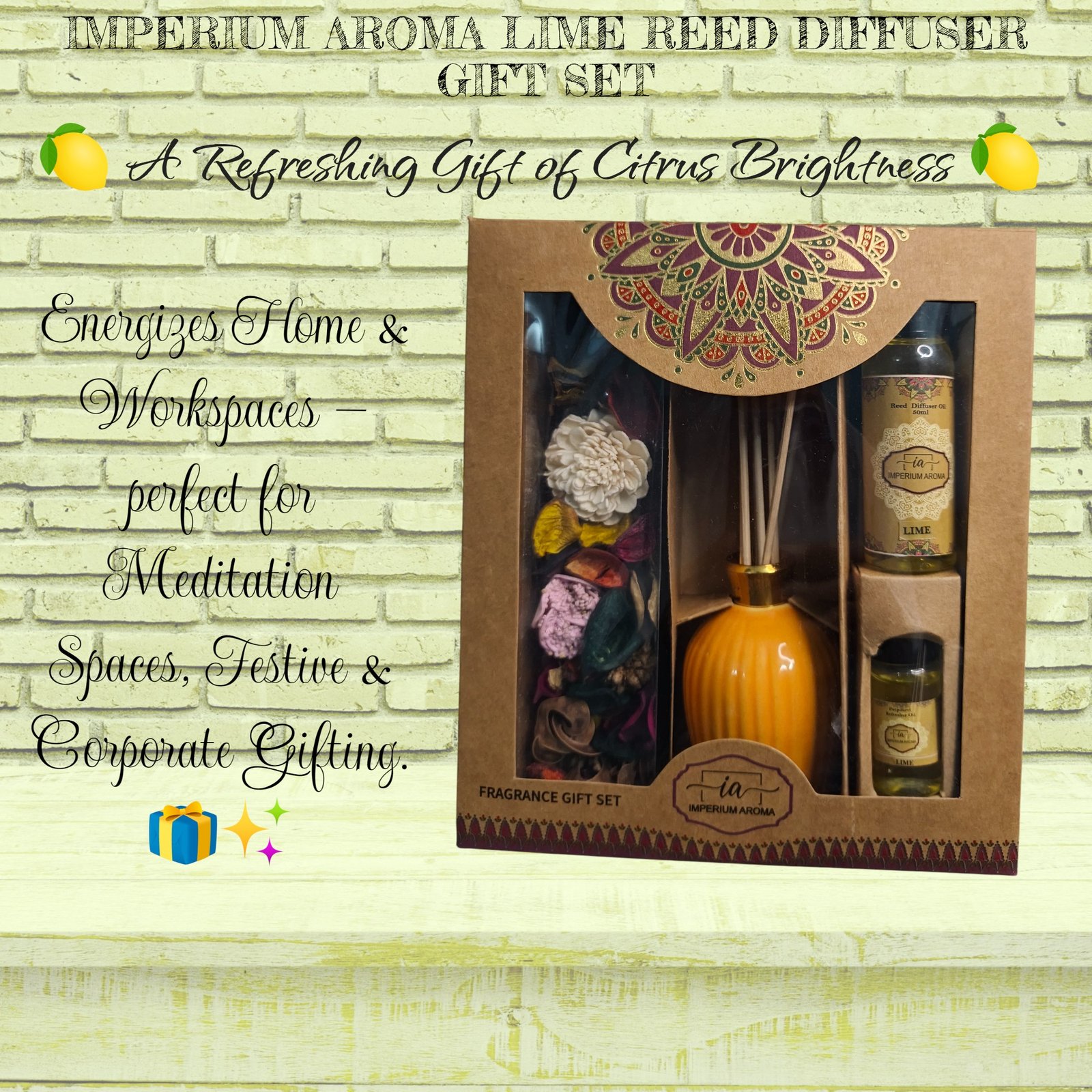 Embrace the crisp vitality of nature with the Imperium Aroma Lime Zest Reed Diffuser.