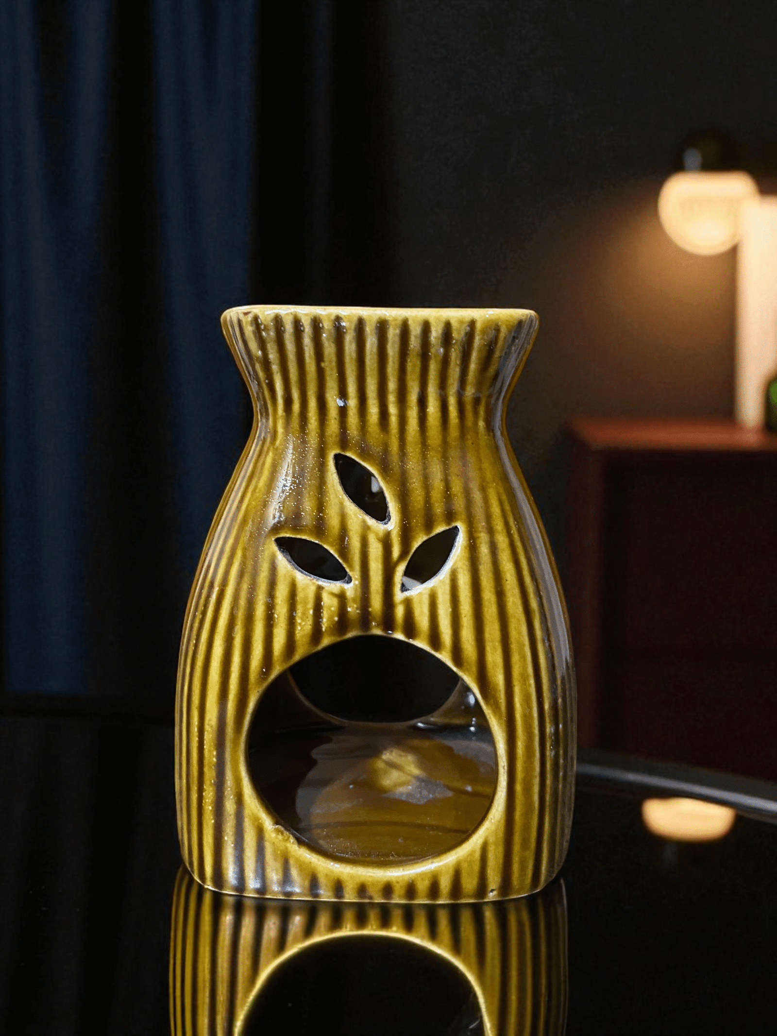 - Insert Tealight Candle – Place one tealight candle in the holder beneath the ceramic pot, carefully light the tealight to gently heat the bowl and begin diffusing fragrance. As the water warms, soothing fragrance will slowly fill your room.