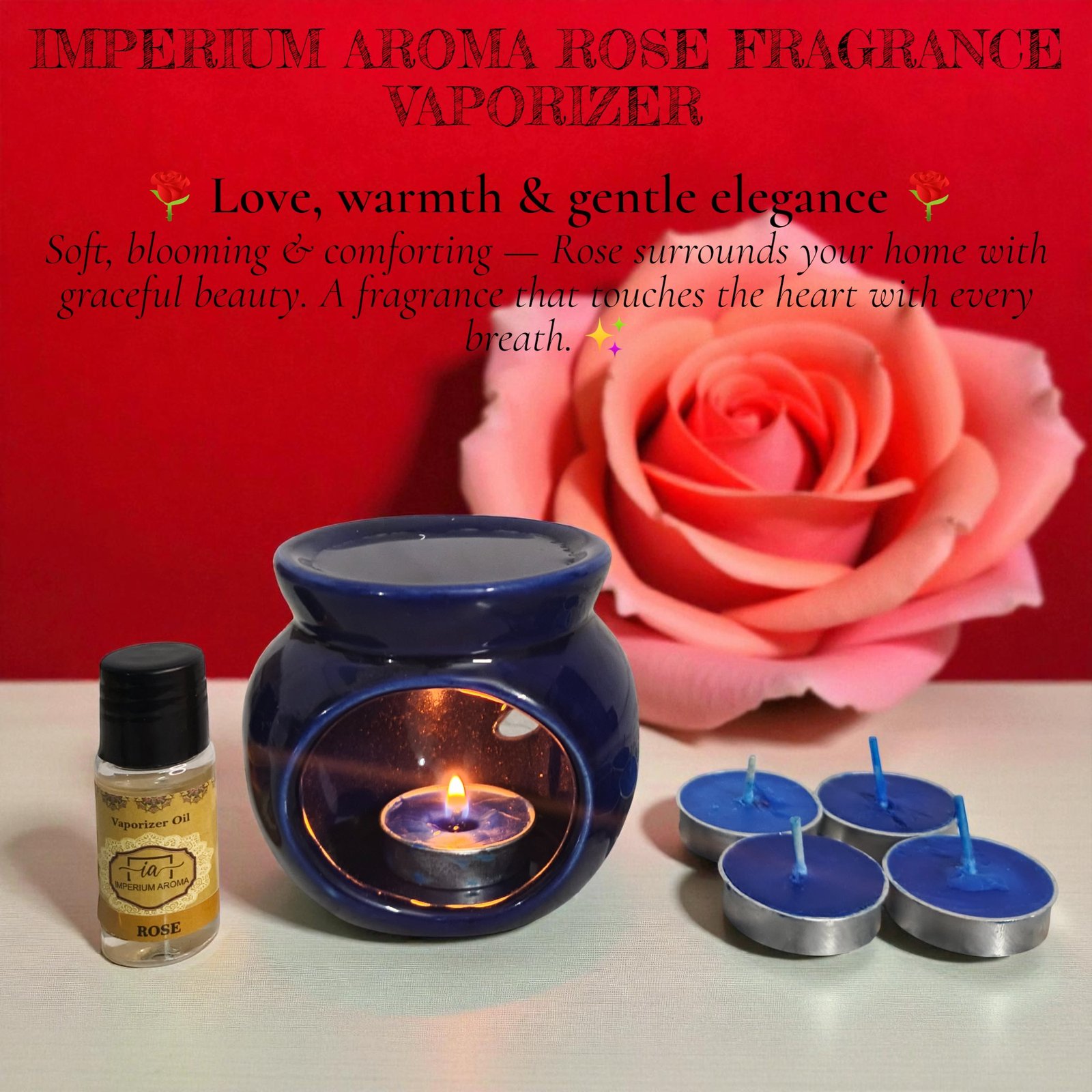 Dual Aroma Experience – Rose & Tropical Sunset: Romantic floral Rose meets exotic Tropical Sunset for a refreshing, mood-enhancing fragrance.