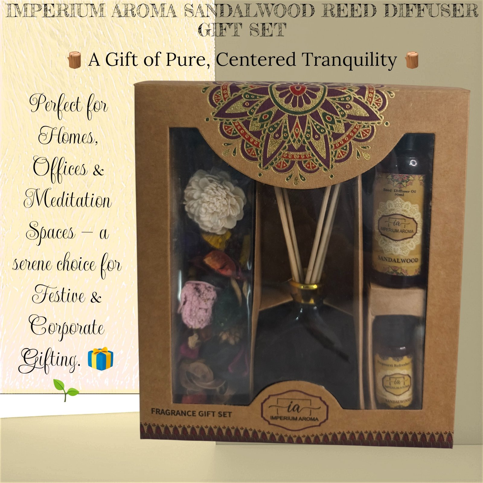 Immerse yourself in the warm, grounding aroma of the Imperium Sandalwood Reed Diffuser. Its rich, earthy notes create a serene, elegant atmosphere that soothes the senses.