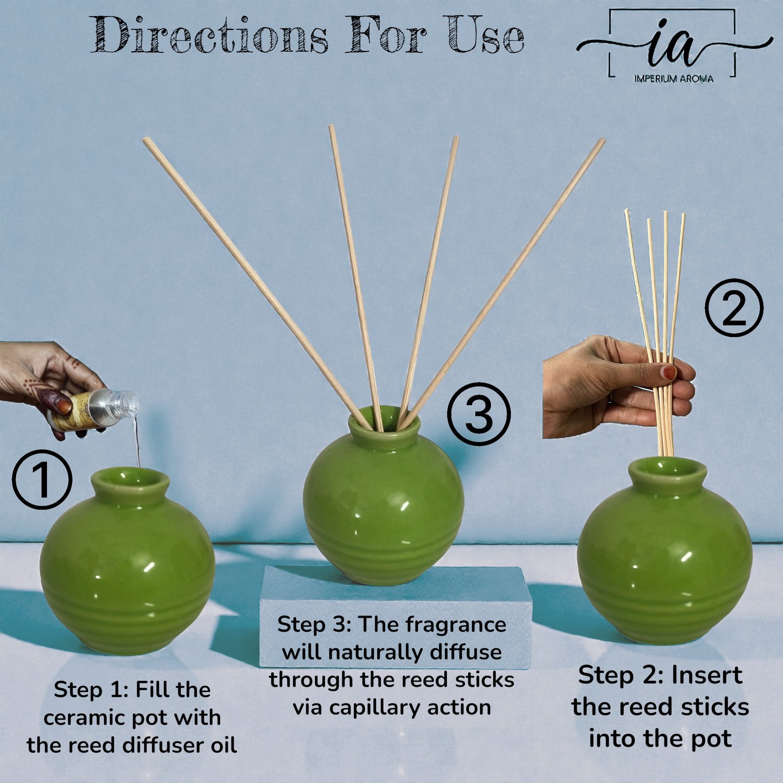 - Fill the ceramic pot with the reed diffuser oil.